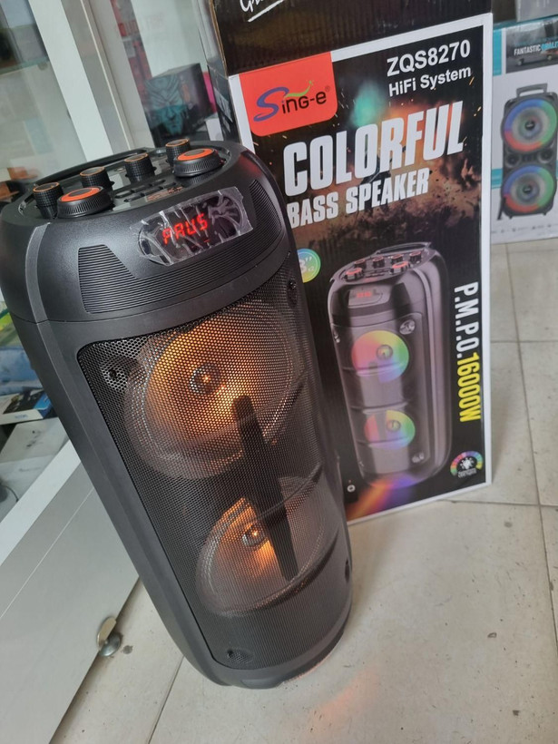 اقلام همراه بلندگو : کابل شارژ ، ریموت کنترل ، میکروفون بیسیم